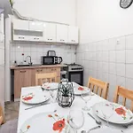 ويحتوي مكان الإقامة أيضًا على المطبخ الكامل مع المايكرويف والغلاية الكهربائية وثلاجة. يتم تقديم الأطباق الأوروبية في البار Gong Cafe Presszo الذي يقع في غضون حوالي 5 دقائق سيرًا على الأقدام من هذه الشقة. يمكن العثور على محطة حافلات Szovetseg utca على بعد دقيقة سيراً من الشقة.